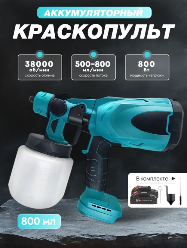 Аккумуляторный краскопульт — ваш надежный помощник в ремонте и декоре! Удобство использования без проводов, высокая мощность распыления и экономичный расход краски обеспечат идеальное покрытие поверхностей быстро и просто. Легкий вес устройства делает работу комфортной даже при длительном использовании. Идеально подходит как профессионалам, так и домашним мастерам! Ваш идеальный выбор для качественных покрасочных работ!