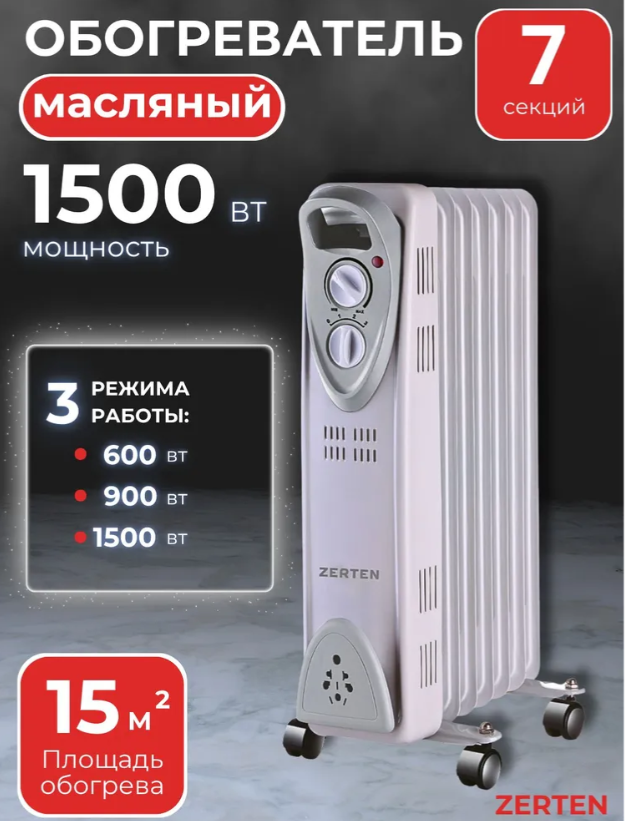 Также масляные радиаторы Zerten отличаются своей мобильностью, с помощью нескольких пар колес устройство легко перемещается в пространстве помещения.