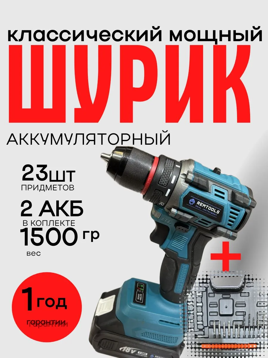 Шуруповерт Remtools + 23 предмета и битыПредставляем вашему вниманию аккумуляторный бесщеточный шуруповерт с мощностью 18В и крутящим моментом 45 Нм. Этот инструмент станет отличным помощником как для профессионалов, так и для любителей DIY-проектов. Благодаря высококачественной бесщеточной технологии, шуруповерт обеспечивает длительный срок службы и высокую эффективность. Его легкий и компактный дизайн позволяет осуществлять работу в труднодоступных местах, что делает его незаменимым в любом наборе инструментов.
